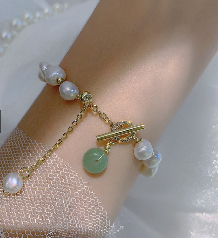 Discover the beauty of nature with our stunning Freshwater Pearl Emerald Bracelet. This exquisite piece of jewelry is designed for everyone, combining elegance and a modern geometric shape that makes it the perfect accessory for any occasion.