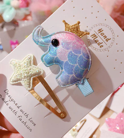 Korean Rainbow Glitter Baby Elephant Hair Clips Set