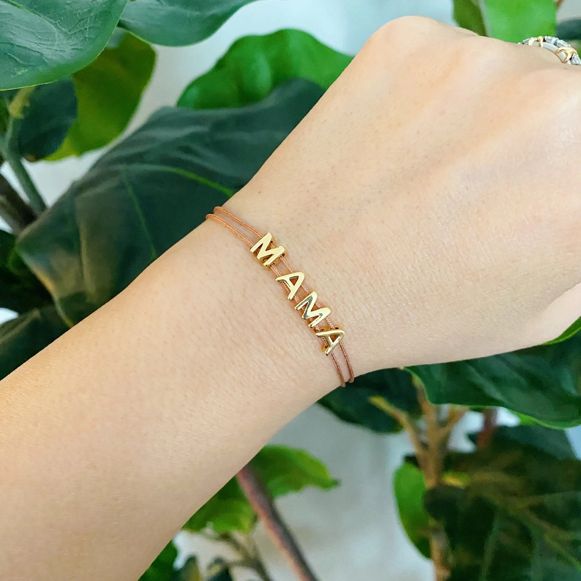 This beautiful MAMA bracelet is made of a slim satin thread with simple golden font MAMA. Its clean, minimalist design features adjustable drawstring size for easy fitting, with each letter that moves independently around the thread. Perfect for the fashionable, yet understated, mother.